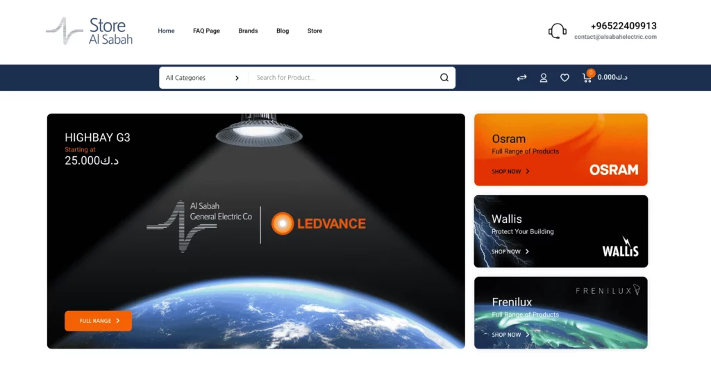 Erahaus Solution: We built a fast, scalable e-commerce site with product categories, filters, and secure checkout. The platform now enables Al Sabah to serve both B2B and retail customers seamlessly, expanding their digital reach.